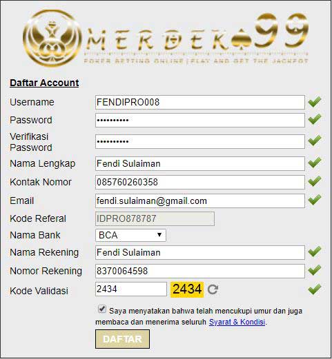 Daftar ID Pro di Situs PKV Games Terpercaya dan Terbaik Indonesia, MERDEKA99 adalah 100% Gratis. Selain itu, prosedurnya juga sangat mudah dan praktis. Anda tinggal mengisi Form Pendaftaran Online yang tersedia di dalam website Merdeka99 di link http://157.245.146.127. Ini tutorial pendaftaran selengkapnya